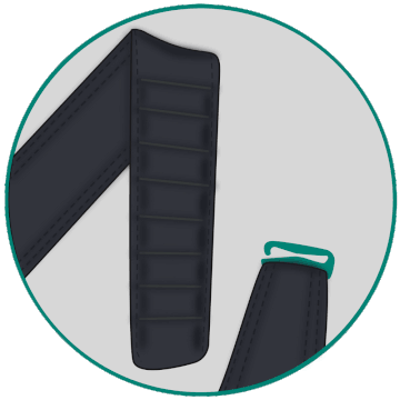 Straps are wide and designed for comfort. They adjust to whatever level of lift you desire. We are not all symmetrical. There is a loop behind the strap to secure it in place.